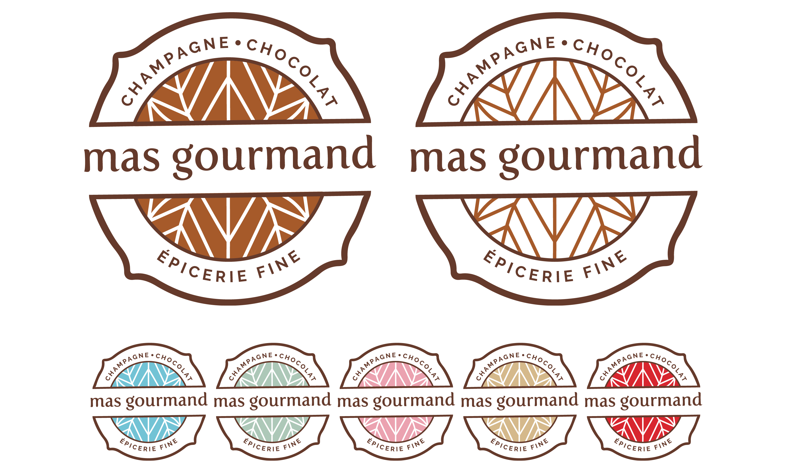Mas Gourmand identité visuelle I graphisme Cette épicerie fine spécialisée dans le champagne, chocolat et produits artisanaux basques avait besoin d’une identité graphique bien à elle pour incarner ses produits. Un travail réalisé avec l’agence EALB.